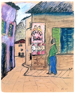 Mit Alexej von Jawlensky zeigen wir einen weiteren großen Vertreter des „Blauen Reiter“. Seine aufs Wesentliche reduzierten „Meditationen“ zeugen von geheimnisvoller Magie und berühren auf eine besondere Weise. Als fortschrittliche, energische und temperamentvolle Persönlichkeit wird Jawlenskys Lebensgefährtin, die Malerin Marianne von Werefkin, von ihren Zeitgenossen beschrieben. Von ihr stammt unser kontrastreiches Aquarell „Straßenecke in Ascona“, das 1931 im Exil entsteht.